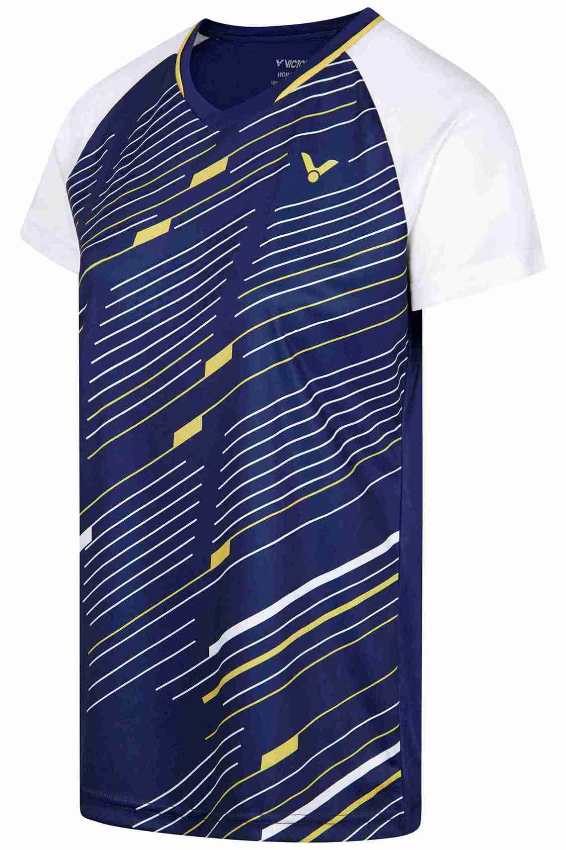 Das VICTOR T-Shirt T-44100B Blau/Gold kombiniert Stil und Funktionalität und eignet sich ideal als Vereinstrikot oder für den persönlichen Gebrauch.