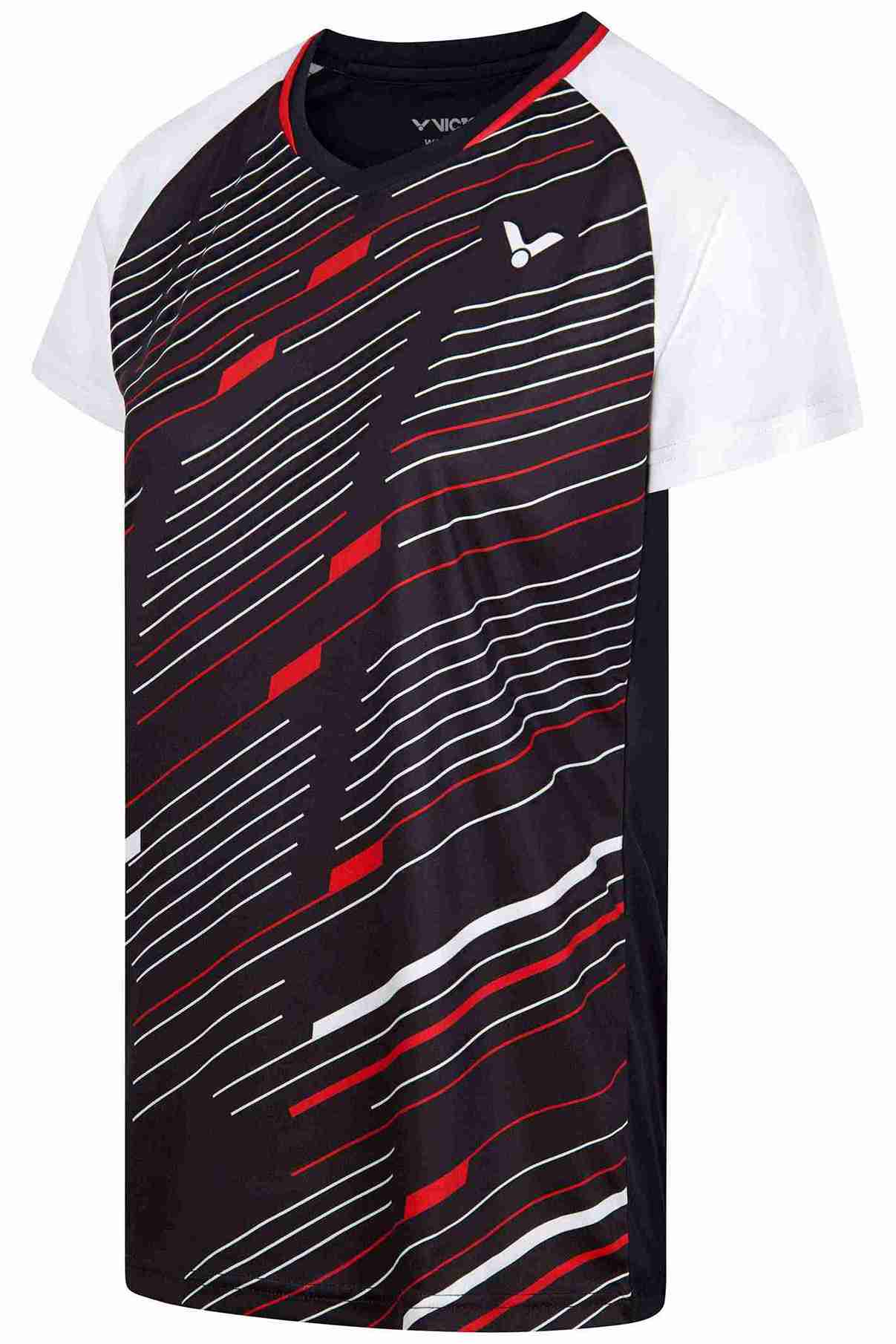 Das VICTOR T-Shirt T-44101C Schwarz/Rot kombiniert Stil und Funktionalität und eignet sich ideal als Vereinstrikot oder für den persönlichen Gebrauch.