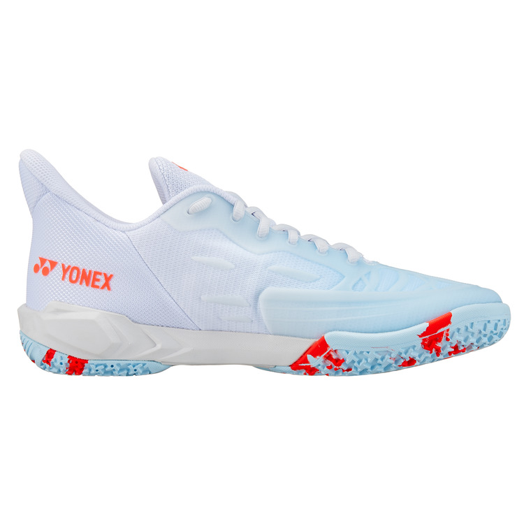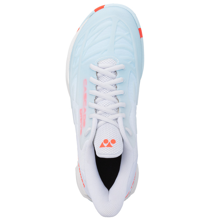 Der Yonex Cascade Drive White/Water Blue Badmintonschuh besticht durch sein auffälliges Design in Weiß und Wasserblau. Er ist sowohl für Herren als auch für Damen geeignet.