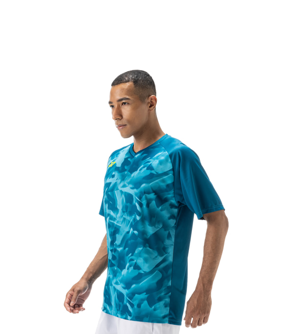 - Stylisches Design – Dynamisches Muster für einen modernen Look: Das YONEX YW0033 Men’s Crew Neck Shirt – LTD ist in Grau und Blau-Grün erhältlich und verfügt über ein auffälliges Muster auf der Vorderseite. Dieses moderne Design sorgt für einen dynamischen, sportlichen Look, der sich perfekt mit anderen YONEX-Produkten kombinieren lässt.