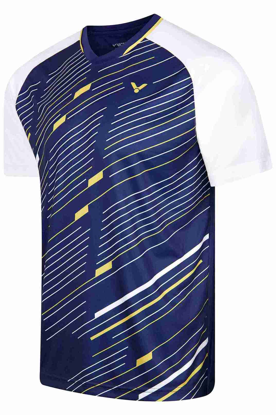Das VICTOR T-Shirt T-43100B Blau/Gold kombiniert Stil und Funktionalität und eignet sich ideal als Vereinstrikot oder für den persönlichen Gebrauch.